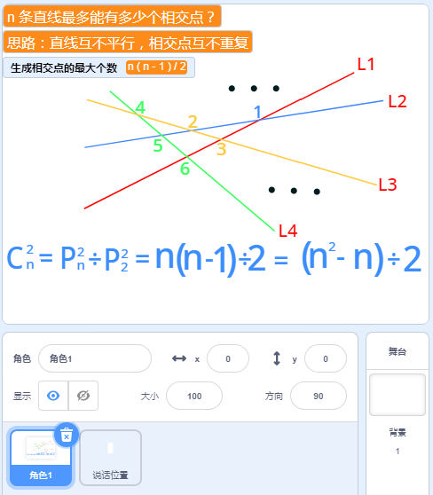 该程序用来计算n条线在一起最多能产生多少个交点的过程。