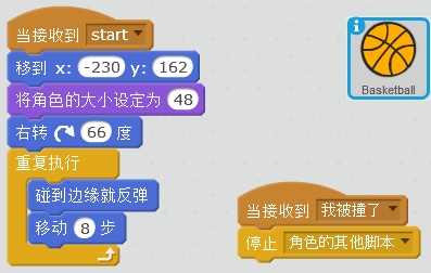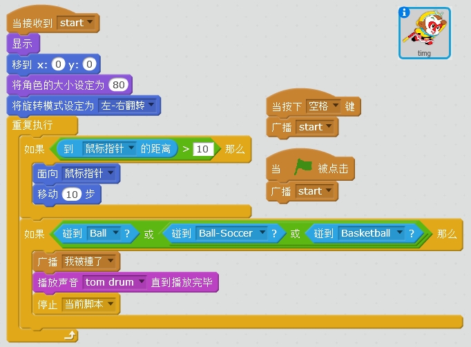 该游戏主要让孩子自主设计场景并熟悉重复执行、移动、逻辑“或”判断等代码的实现方法,难点是判断碰撞后各个角色的状态呈现,以及怎么解决小猴抖动的问题。