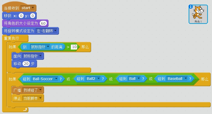该游戏主要让孩子自主设计场景并熟悉重复执行、移动、逻辑“或”判断等代码的实现方法,难点是判断碰撞后各个角色的状态呈现,以及怎么解决小猫抖动的问题。