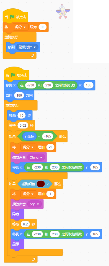 该程序主要使用了运动、控制、事件、外观、克隆。