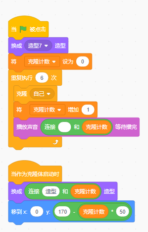 该程序主要使用了运动、控制、事件、外观。中间经历了:只移动一次--->持续行走--->控制运行(停止/开始)--->润色按钮--->代码精简。